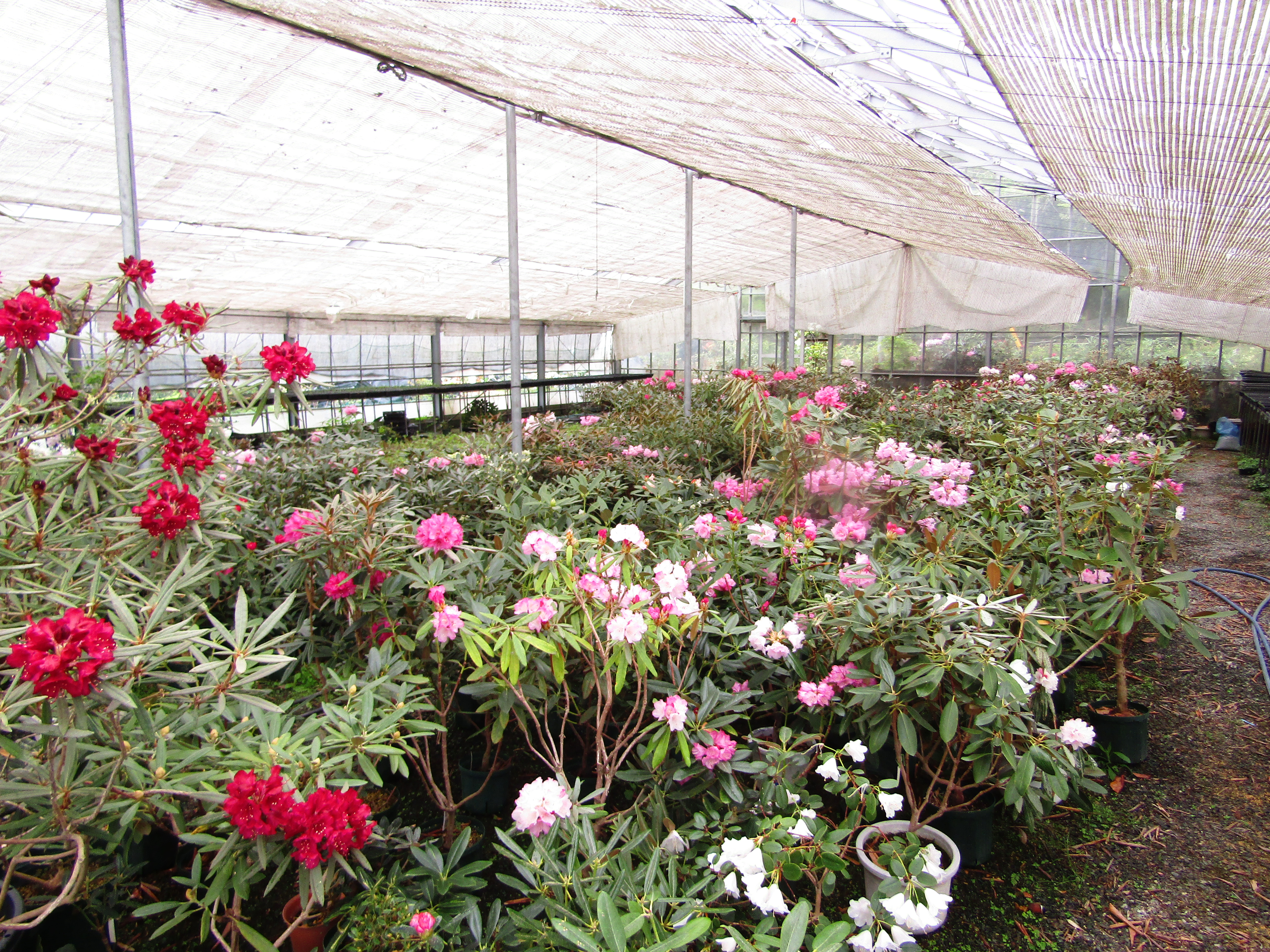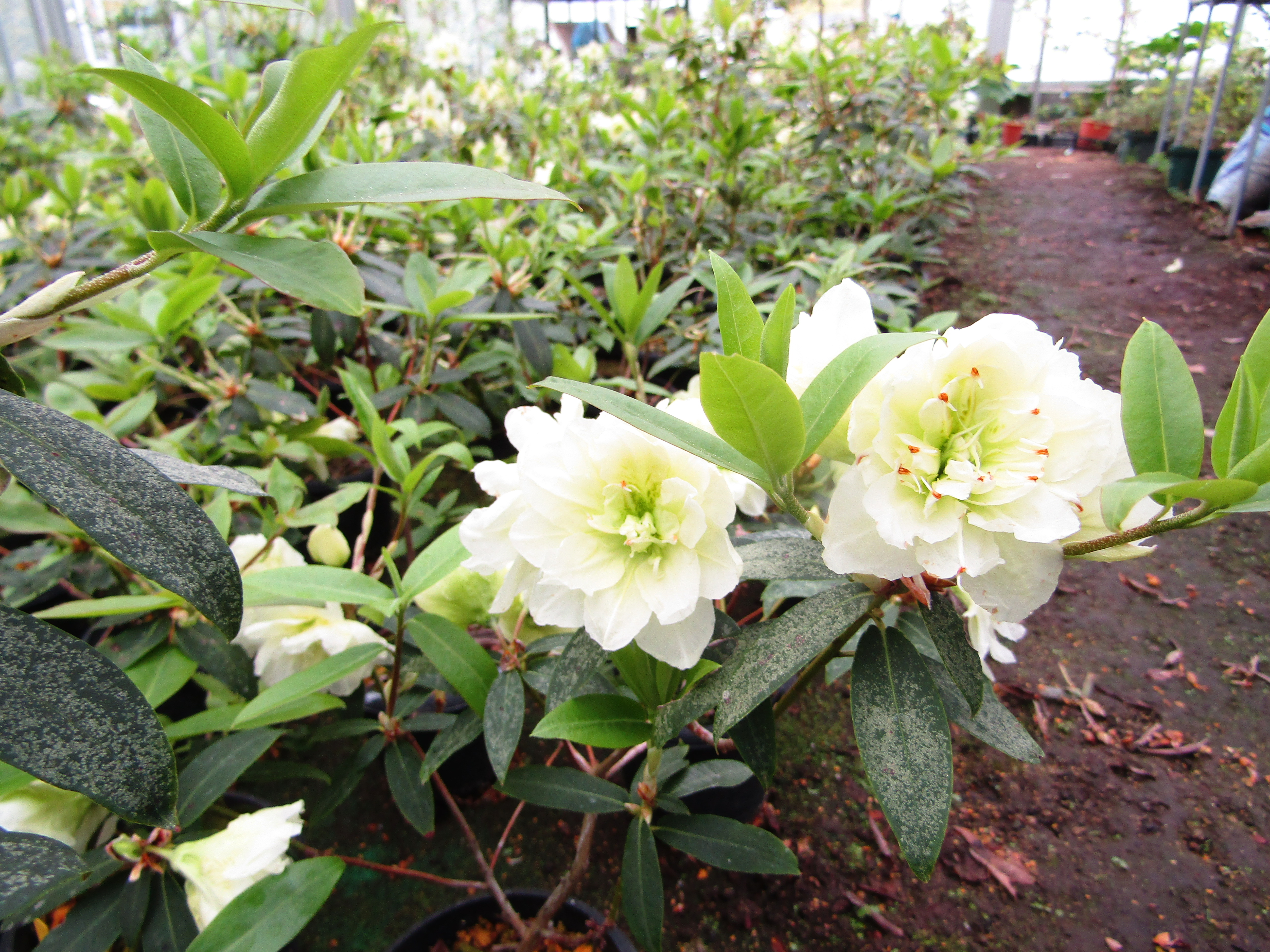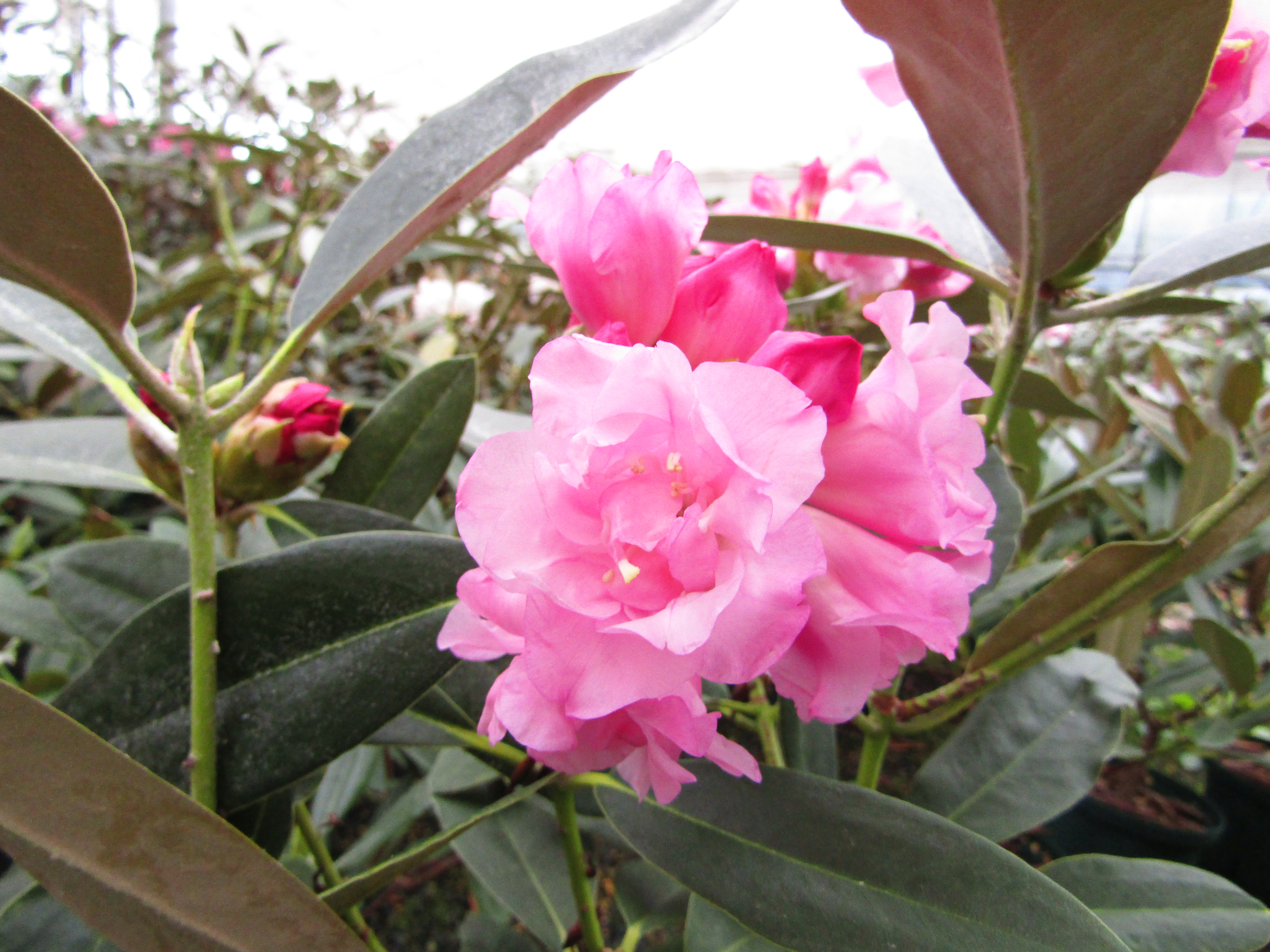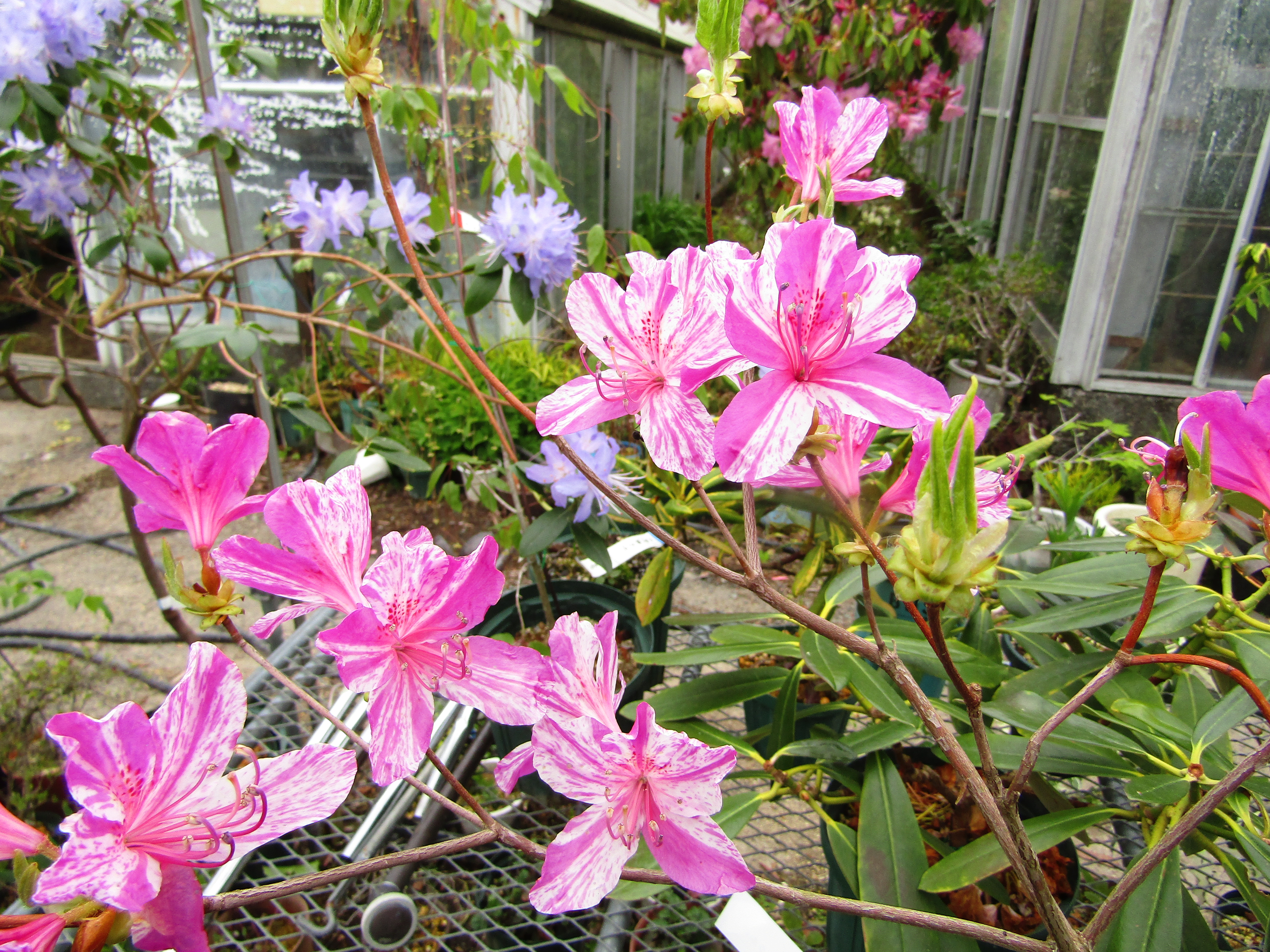 当園で作出したアマギシャクナゲの八重咲きやヒカゲツツジ八重咲きなど開花中